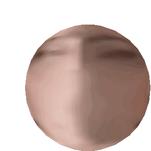 Fretyet's distorted face spins on a sphere, creating a mesmerizing and slightly unsettling visual effect.