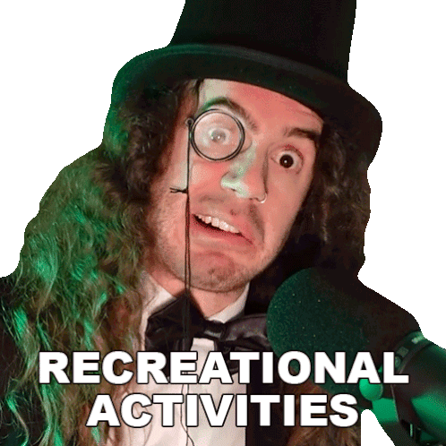 Bradley Hall, wearing a top hat and monocle, looks surprised while the text 'Recreational Activities' appears.