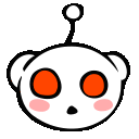 A cute Reddit Snoo emoji with red eyes and pink blushing cheeks, perfect for expressing shyness or embarrassment.