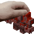a hand is holding a toy truck that is covered in blood .