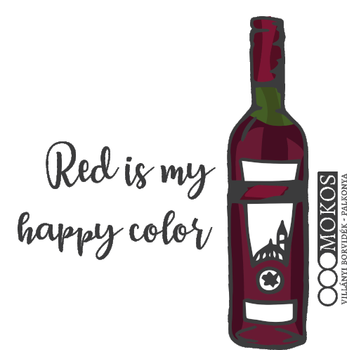 An elegant animated sticker featuring a red wine bottle with the text 'Red is my happy color', perfect for wine lovers.