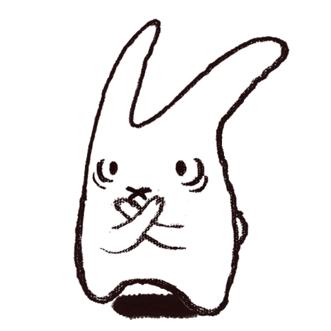 Annoyed white bunny character with long ears and crossed arms, expressing refusal or disagreement.