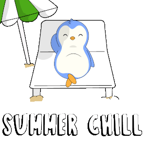 A Pudgy Penguin relaxes on a beach chair under an umbrella, embodying the "SUMMER CHILL" vibe.