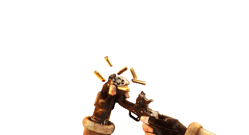 a person holding a gun with bullets flying around them