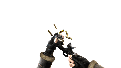 a person is holding a gun with bullets falling from it