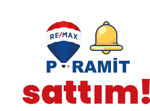 A vibrant sticker featuring the Remax Piramit logo, a ringing bell, and the declaration 'I sold it!' in Turkish.