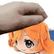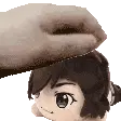 a person is petting a little girl 's head with a glove .