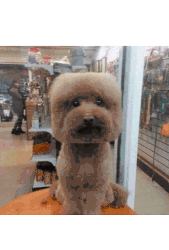 Two dogs with unique, geometric grooming styles, one spherical grey and one cube-shaped white, showcasing funny pet makeovers.