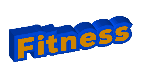 Animated 3D text spelling "Fitness" in vibrant blue and orange, subtly rotating.