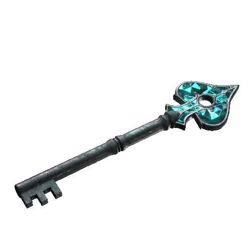 a key with a turquoise design on it is against a white backdrop