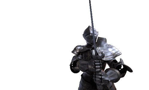 a knight is holding a sword in his right hand