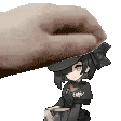 a pixel art of a hand petting a little girl .