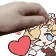 a hand is touching a cartoon girl with a red heart .