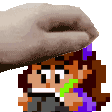 Lucia Moon from Rhythm Doctor, wearing her hat and accompanied by her pet, blinks in this charming pixel art animation.