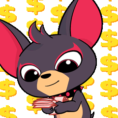 a cartoon dog is holding a stack of money