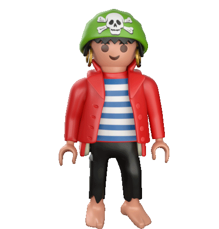 Rico the Playmobil pirate blows kisses, surrounded by floating red hearts, expressing love and gratitude.
