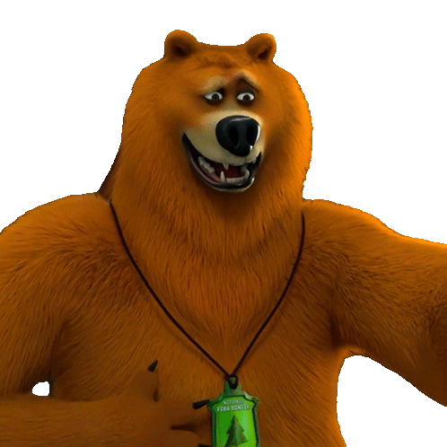 Grizzy the bear from Grizzy and the Lemmings laughs heartily with a wide, happy smile.