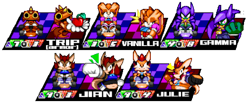 a bunch of cartoon characters with the names trip vanilla gamma julie and jian