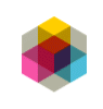 Kleurrijke, puzzelachtige 3D-kubuslogo van Riho Vloerverwarming, bestaande uit doorschijnende blokken op een witte achtergrond.