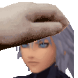 a pixel art of a person 's face with a hat on their head .
