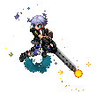Animated pixel art sticker of Riku from Kingdom Hearts, holding a gun with a determined expression.