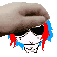 Riku Nakamura, the violinist character, is featured as a cartoon head with vibrant red and blue hair and cool sunglasses.
