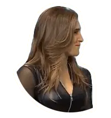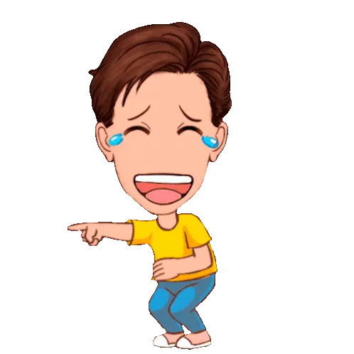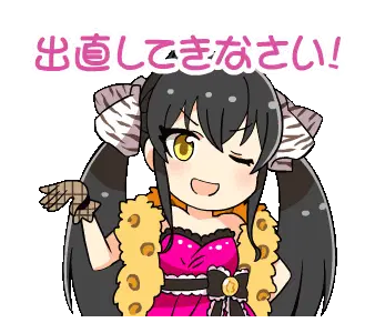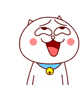 Risa, a white cartoon cat with a blue collar and yellow bell, makes a funny, smug face, looking up with its tongue out.