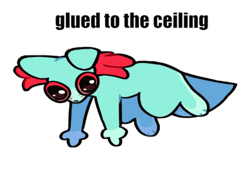 a cartoon of a dog with the words glued to the ceiling