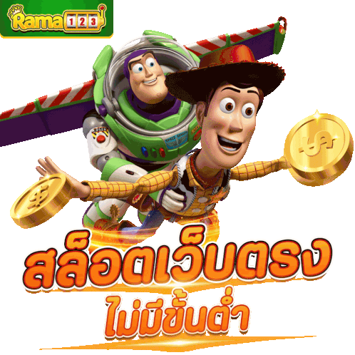 buzz lightyear and woody from toy story holding gold coins with rama 123 in the background