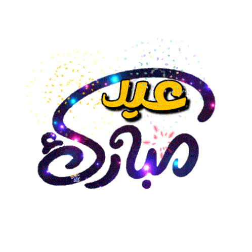 An animated sticker featuring the Arabic calligraphy 'Eid Mubarak' and 'Ramadan' with sparkling glitter effects, perfect for festive greetings.