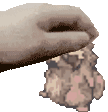 A pixelated hand gently pats Smokie, the adorable raccoon-like creature from Ragnarok Online, showing affection.