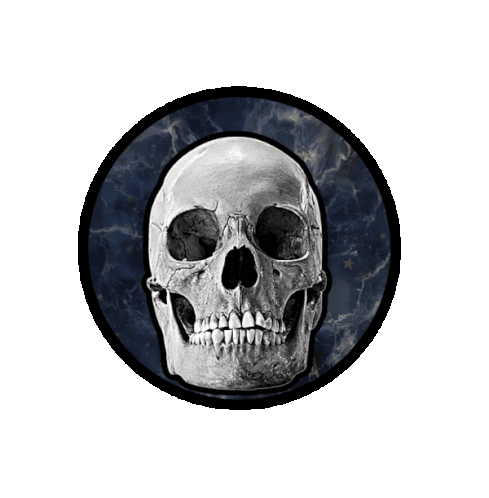 A stylized skull wearing a top hat and sunglasses with a Union Jack pattern, surrounded by black roses, with "Rock n Roll" text.