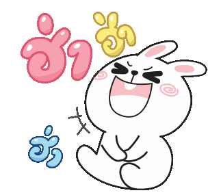 A cute white bunny laughs hysterically, rolling around with Thai text for 'hahaha'. Perfect for expressing extreme amusement.