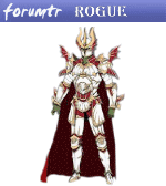 A powerful Rogue Knight character in ornate white and gold armor with a red cape, ready for battle.