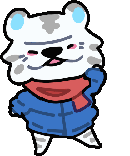 Rolf from Animal Crossing New Horizons, the cute white tiger, happily dancing and waving in his winter outfit.
