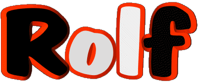 Animated sticker featuring the word 'Rolf' in a bold, 3D, red and black design, subtly shifting textures and patterns.