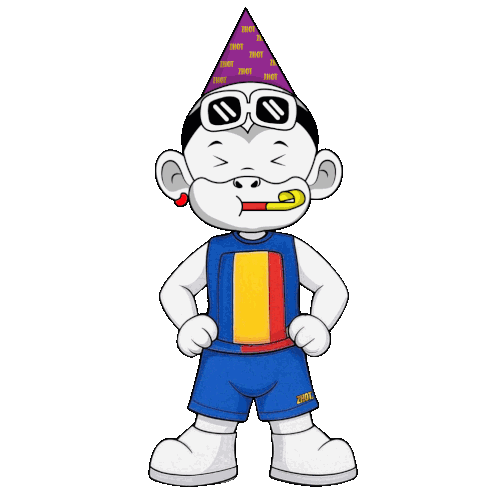 a cartoon character is wearing a party hat and shorts that say 2m07