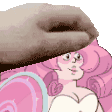 Rose Quartz from Steven Universe with pink hair, a heart gem, and a donut on her head, reacting to being petted.