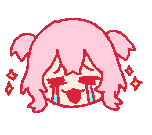 Animated sticker of Rosemi Lovelock with pink hair and red eyes, showing emotion and possibly crying.