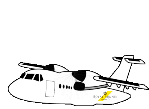 Animated sticker of a white Royal Brunei Airlines propeller plane with spinning engines, featuring the airline's logo.