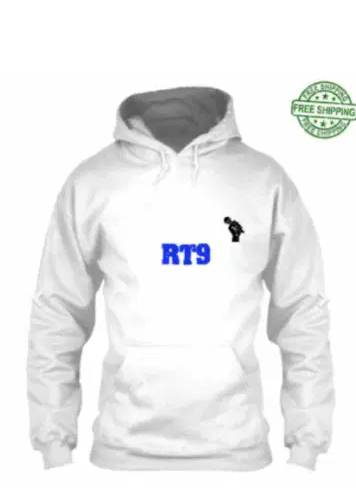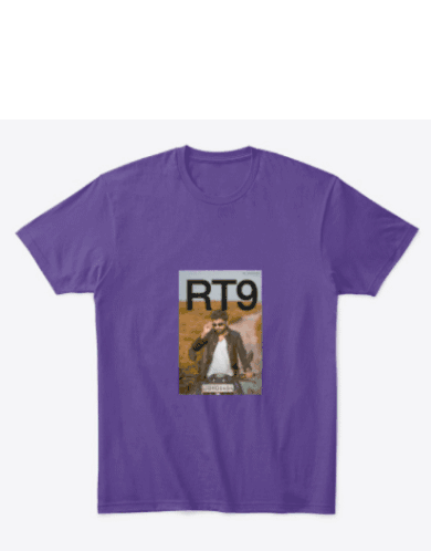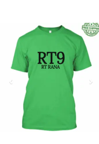 Light blue t-shirt featuring a printed image of Rt Rana wearing sunglasses, with 'RT9' text above, creating a stylish sticker.