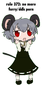 Chibi Nazrin character with mouse ears, animated with 'furry/ddlc porn' caption. Features Goku.