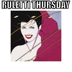 A vibrant anime-style woman, Rula, with black hair and red lips, smiles in a poster for Ruletti Thursday.