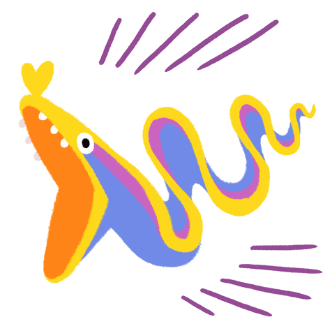 a cartoon drawing of a colorful fish with a heart on its head