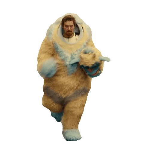 Benedict Cumberbatch as Vincent Anderson, running in a fluffy monster costume with a determined expression.