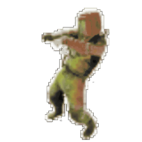 a pixel art of a man holding a gun with the words beamed by haoming above him
