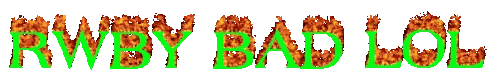 the word rwby bad lol is written in flames in green
