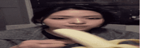 a woman is eating a banana with her mouth