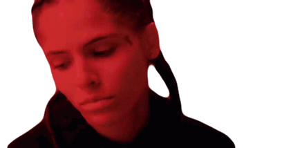Danielle Balbuena appears sad and thoughtful, illuminated by a striking red light, reflecting a gloomy mood.