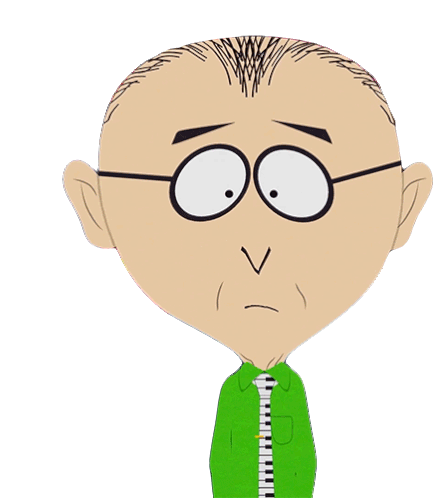 Mr Mackey from South Park looking sad and depressed, wearing his signature green jacket and glasses.